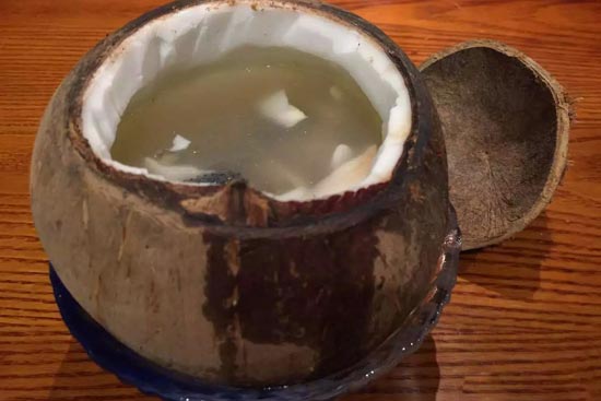 4、海椰皇用搗碎器敲去外殼,將椰內(nèi)洗凈對(duì)切成兩半。