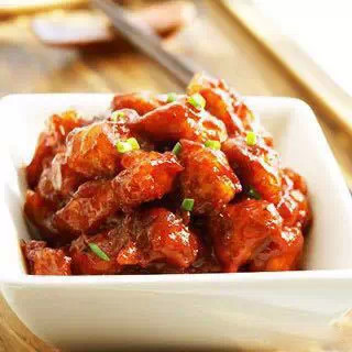 6.將油再次燒熱至沒有水的劈啪聲,倒入初炸的肉丁復炸至金黃色撈出控油。