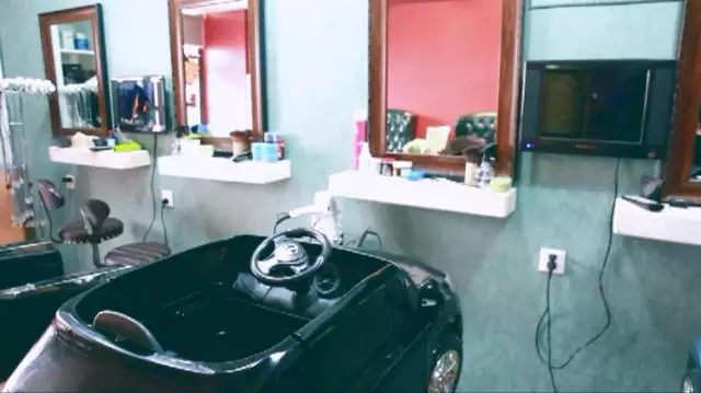 這里的環(huán)境完全為小朋友打造,小汽車小玩偶,還有休閑娛樂區(qū)域,隨時放映不停播的動畫片,沒錯這就是小盆友的樂園。除了這些,這里充斥著各種汽車元素,模型玩具,甚至連理發(fā)座椅都是豪車。